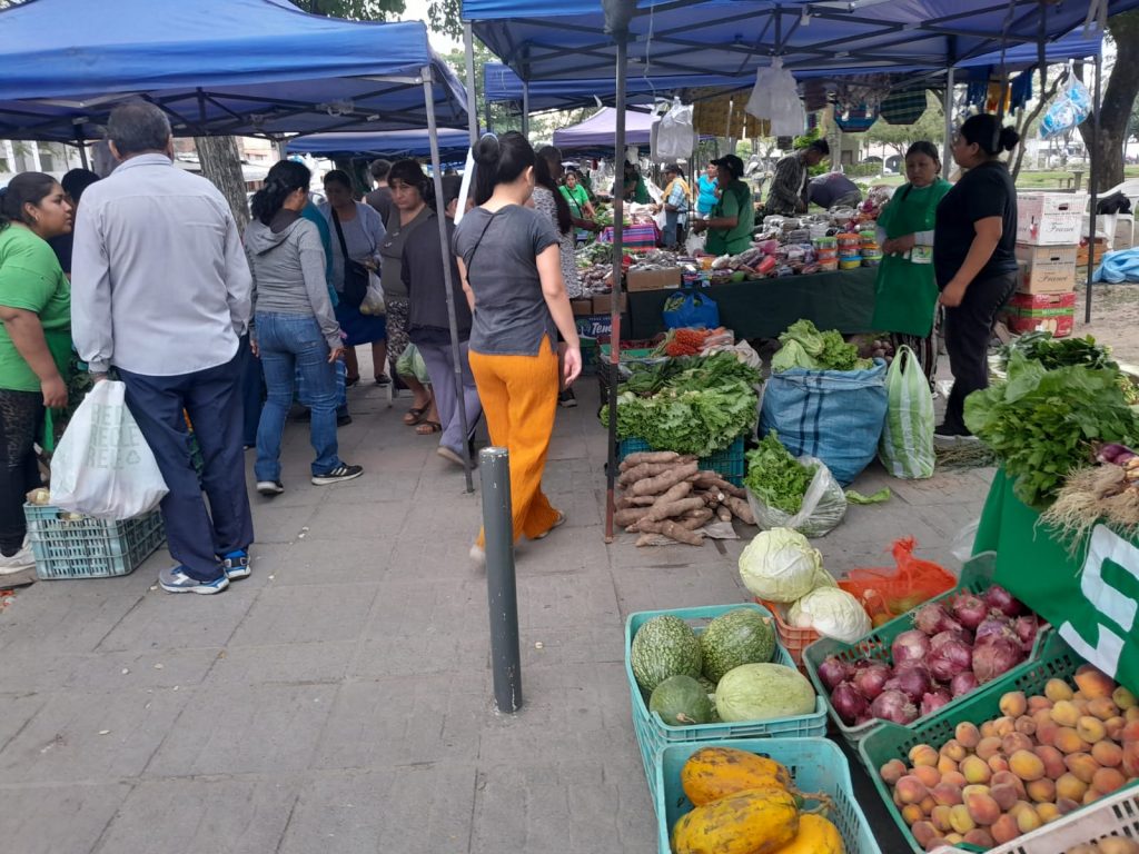 Frutas y verduras, además otras elaboraciones del campo de la Unión de Trabajadores de la Tierra, hoy en plaza San Martín por vereda sobre cale López y Planes.