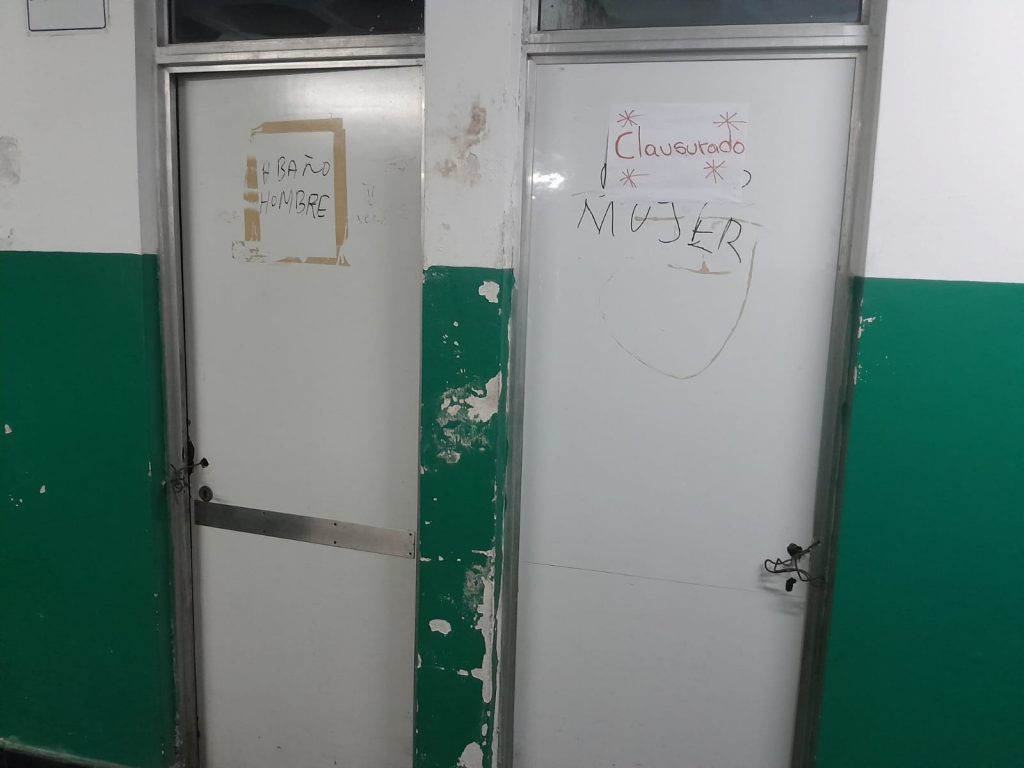 En el sector de mayor concentración de gente por la dación de turno, y ala del nosocomio con los consultorios externos, los baños públicos están clausurados y la explicación sobre el servicio, es que las personas tienen la opción de acudir a los baños de la guardia central por calle Pueyrredón. El tema baño…