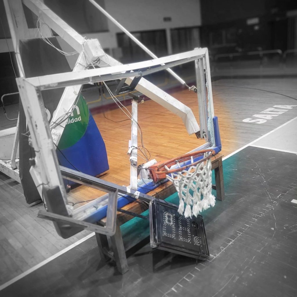 Hubo cables tironeados que se reparan con facilidad dijo el Coordinador, el piso parquet gracias a Dios no sufrió daños, y el dolor de cabeza es la rotura del acrílico del tablero. En la búsqueda del elemento, una empresa local, Potenza inmediatamente llegó al Polideportivo a tomar las medidas, y luego su propietario Belluccini avisó que donará el elemento, considerando que es clave solucionar de inmediato el problema para la práctica de la disciplina.