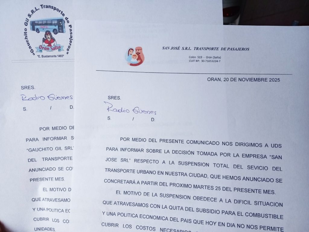 Se trata del servicio de las empresas Gauchito Gil y San José, emitiendo ambas empresas comunicados donde dan cuenta de la crisis económica que les impida continuar cumpliendo los recorridos.