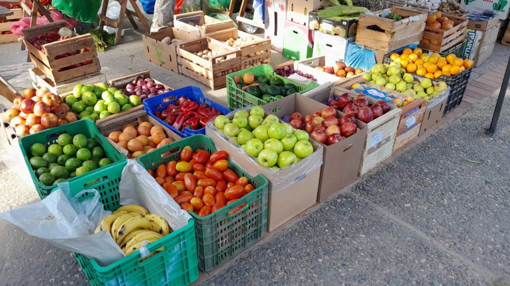 Los integrantes de la Unión de Trabajadores de la Tierra, pequeños productores de la zona, realizan la venta de frutas y verduras, además otras elaboraciones del campo. Precios de referencia.