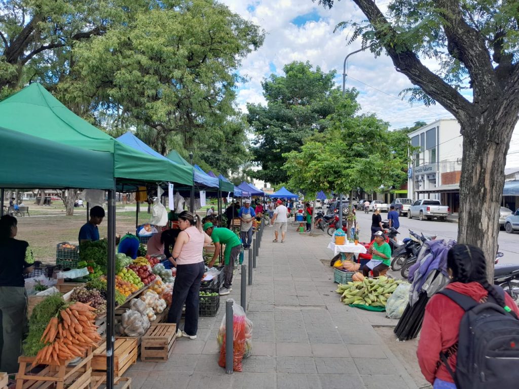 Los integrantes de la Unión de Trabajadores de la Tierra, pequeños productores de la zona, realizan la venta de frutas y verduras, además otras elaboraciones del campo. Precios de referencia.