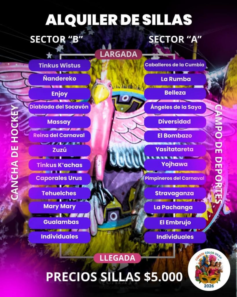 La Comisión organizadora dio a conocer las ubicaciones de cada conjunto con sus sillas a lo largo del predio del corso, con los contactos para que la gente haga las reservas correspondientes, señalando también el precio oficial.