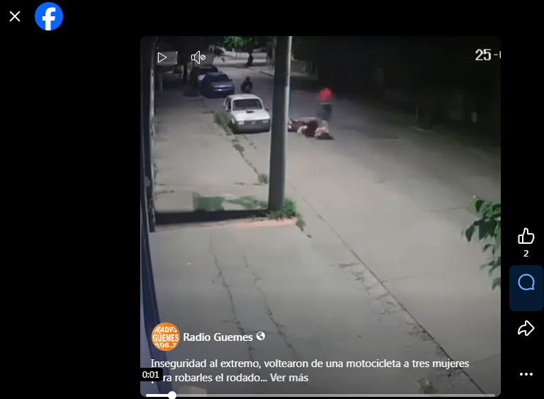 Fue en horas de la noche, según se pudo conocer con tres mujeres que bajando en motocicleta 110 cc. por calle Güemes en zona céntrica, y en un momento dados dos sujetos le salieron al cruce para directamente voltearlas del rodado. En el peligro ataque las víctimas quedaron tiradas en el suelo, mientras los delincuentes se daban a la fuga.