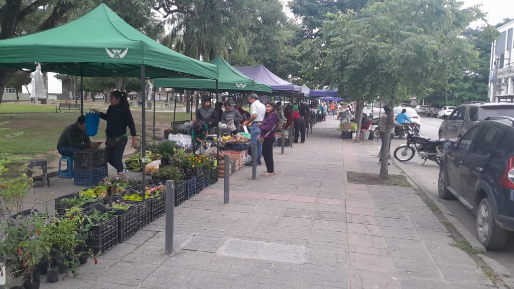 Frutas y verduras de productores de la zona, además otras elaboraciones del campo, es la venta de la UTT hoy en la plaza San Martín en la vereda por calle López y Planes. Precios de referencia.